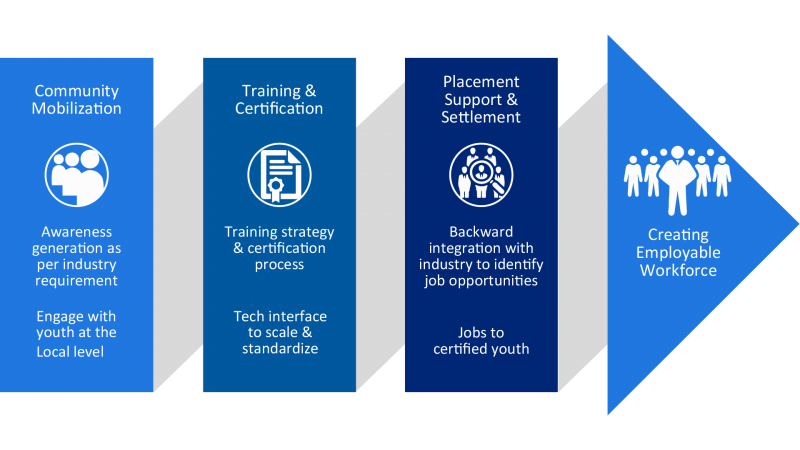 Our approach in skill Development : creating skills Empowering livelihoods Our ever-expanding commitment to the Skill India Mission is based on new-age livelihood skill development solutions that are simple, effective and mobilize whole communities. We have skilled a million-plus youth across 72 industry sectors over the last 13 years. With structured technology blended training, certification, placement and settlement, our mission is to enable India’s employable population to achieve its productive potential. We have already trained over 21,000 candidates up to 2009.